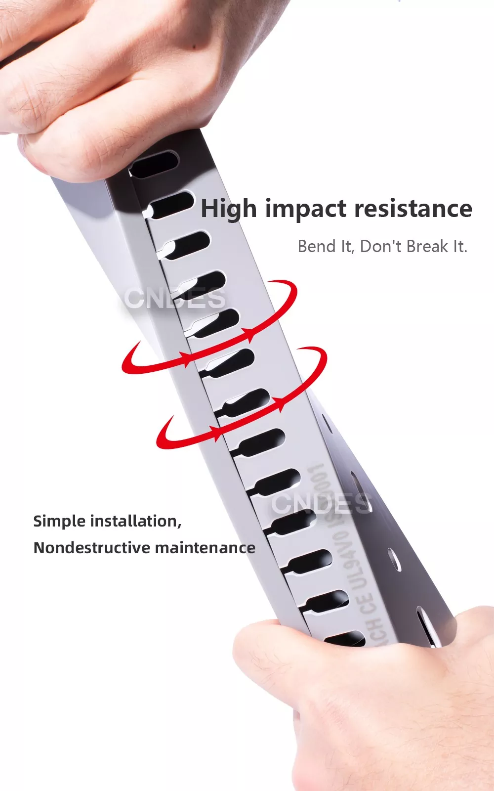 Tikslus griovelis – Precizinis griovelis – kokybiškas 100 × 60 PVC kanalas, skirtas elektrinėms plokštėms, turi vienodą griovelio dizainą, leidžiantį kabeliams švariai išeiti iš bet kurios padėties; pasirinktiniai skylių raštai galimi kaip papildoma parinktis.