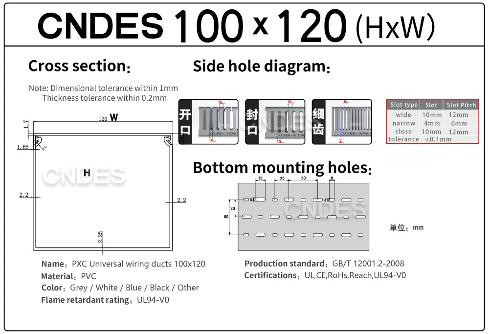 CNDES yra profesionalus kabelių lovelių gamintojas, turintis 24 metų patirtį, specializuojasi individualizuotų 100 mm aukščio atvirų plyšių PVC korpuso laidų kanalų gamyboje. Čia pristatysime mūsų 100 mm aukščio kabelių lovelių serijos gaminius.
