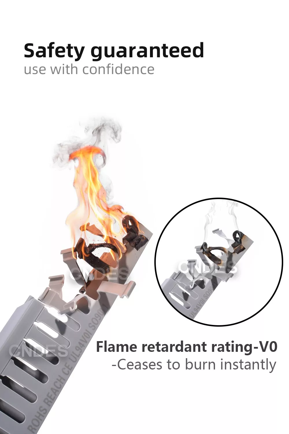 Kokybiškas 100 mm aukščio atviro plyšio PVC korpuso laidų kanalas yra pagamintas iš UL94 V-0 antipireno PVC medžiagos, kuri savaime užgęsta pašalinus liepsnos šaltinį, efektyviai sulėtina ugnies plitimą ir pagerina bendrą elektros saugą. Puikios izoliacijos savybės padeda išvengti srovės nutekėjimo ir trumpojo jungimo rizikos, užtikrina stabilų veikimą elektros gaubtuose ir valdymo skyduose.