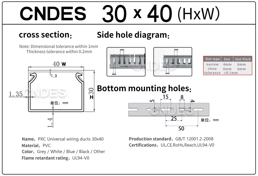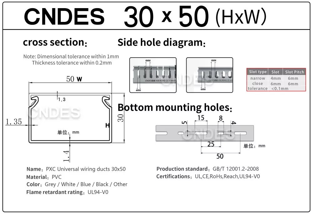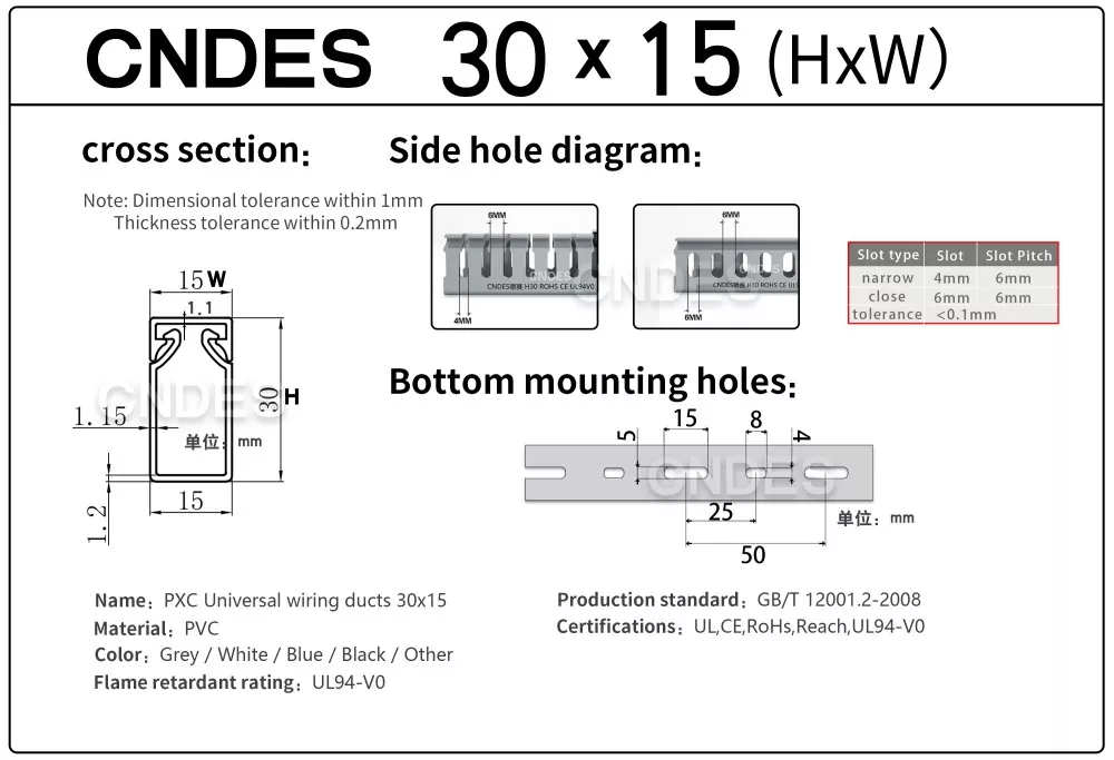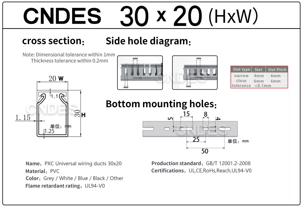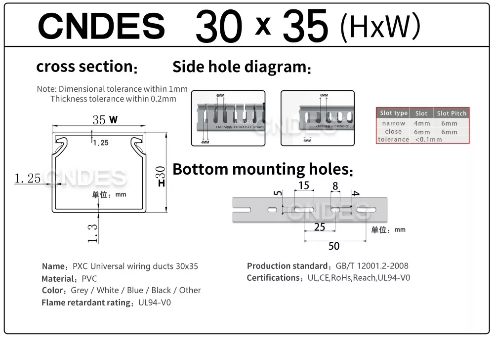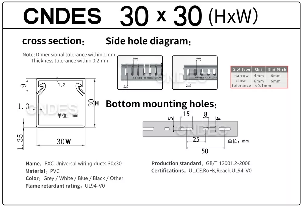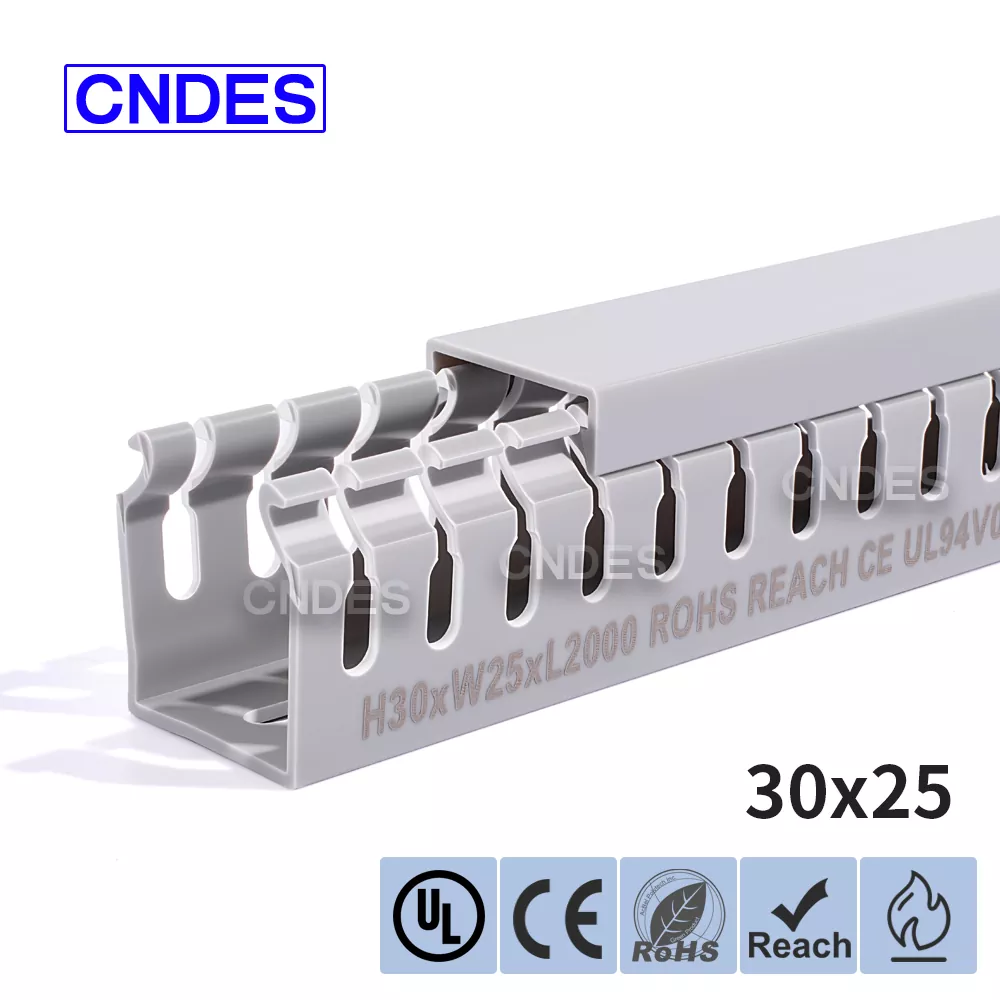 Individualizuotas 30 mm aukščio plyšinis PVC kabelių valdymo kanalas iš CNDES yra skirtas efektyviam, kompaktiškam ir saugiam kabelių tiesimui įvairiose pramoninėse, komercinėse ir gyvenamosiose patalpose. Šis kanalas idealiai tinka naudoti, kai erdvės ribotumas, todėl jūsų laidai yra sutvarkyti, apsaugoti ir lengvai pasiekiami.