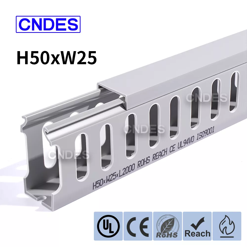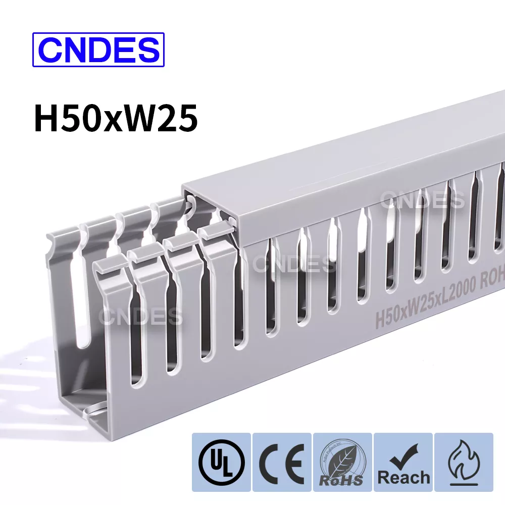 Ieškote paprasto ir patikimo būdo sutvarkyti laidus elektros spintose ar pramoninėse plokštėse? Individualizuotas 50 × 25 mm plyšinis PVC elektros spintelės kanalas iš CNDES sukurtas taip, kad jūsų laidai būtų tvarkingi, prieinami ir saugūs.
