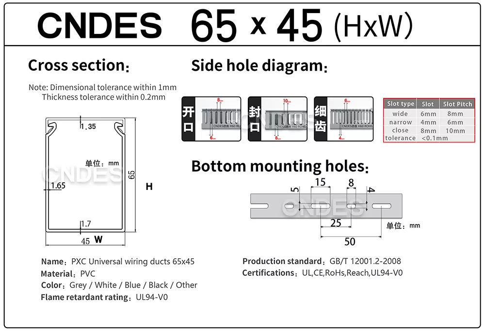 Jei perkate pritaikytus 65 × 45 pilkus PVC laidų kanalus iš patikimo gamintojo ir tiekėjo Kinijoje, CNDES siūlo pastovią kokybę, lankstų pritaikymą ir profesionalias paslaugas.